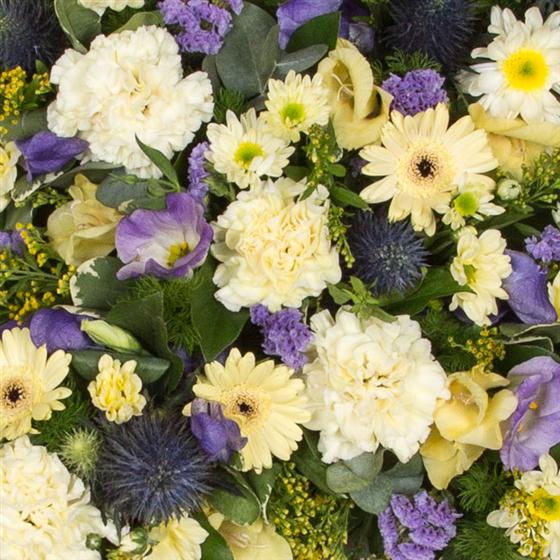 A loose style cross of including mixed seasonal flowers and foliage. Available as pictured or in a colour of your choice.