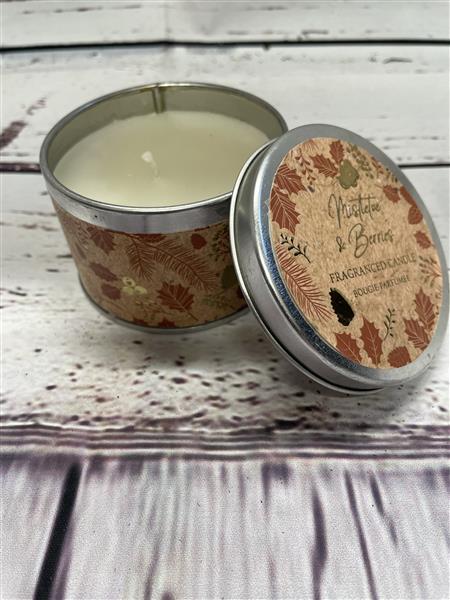 Mistletoe & berries fragranced candle in a tin. A lovely scented add on to your gift.
