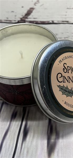 Spiced Cinnamon Fragranced Candle in a tin. A lovely add on to your gift.