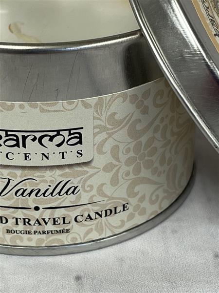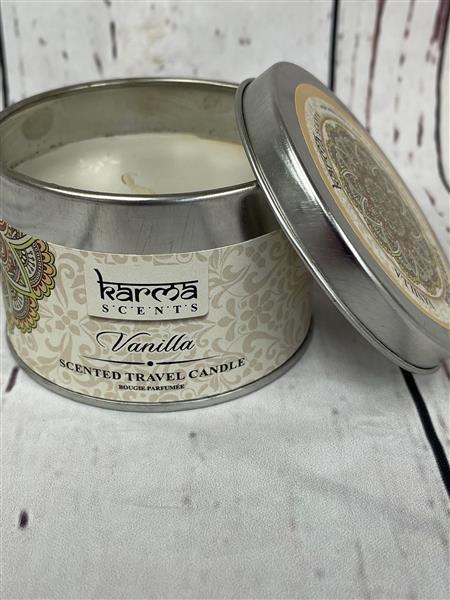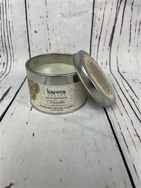 Beautiful vanilla scented candle in a modern tin container.